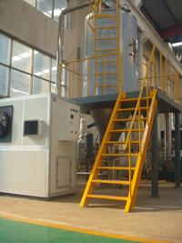 中藥浸膏是由植物根莖葉提取而成,特別是醇提工藝,它含糖份較高,在高溫下易軟化熔融,普通的離心噴霧已無(wú)法滿(mǎn)足干燥,針對這種情況我公司組織了一批精干的技術(shù)力量,總結出幾年來(lái)本廠(chǎng)設計制造噴霧干燥機的成功經(jīng)驗,收集了國內外同行業(yè)同類(lèi)型產(chǎn)品的優(yōu)點(diǎn),經(jīng)過(guò)精密、反復的工藝計算和無(wú)數次的實(shí)驗,開(kāi)發(fā)出了中藥專(zhuān)用噴霧干燥機組,并推廣到了一些知名藥廠(chǎng)使用。