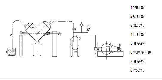 本機用于制藥、化工、食品等行業(yè)兩種以上的干粉狀、顆粒狀物料的混合。